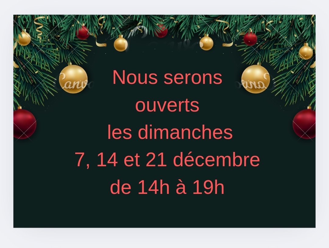 NOUS SERONS OUVERTS LES DIMANCHES : 7, 14 et 21 décembre