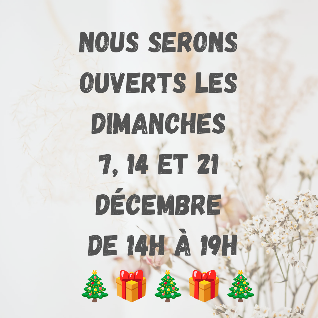 NOUS SERONS OUVERTS LES DIMANCHES : 7, 14 et 21 décembre
