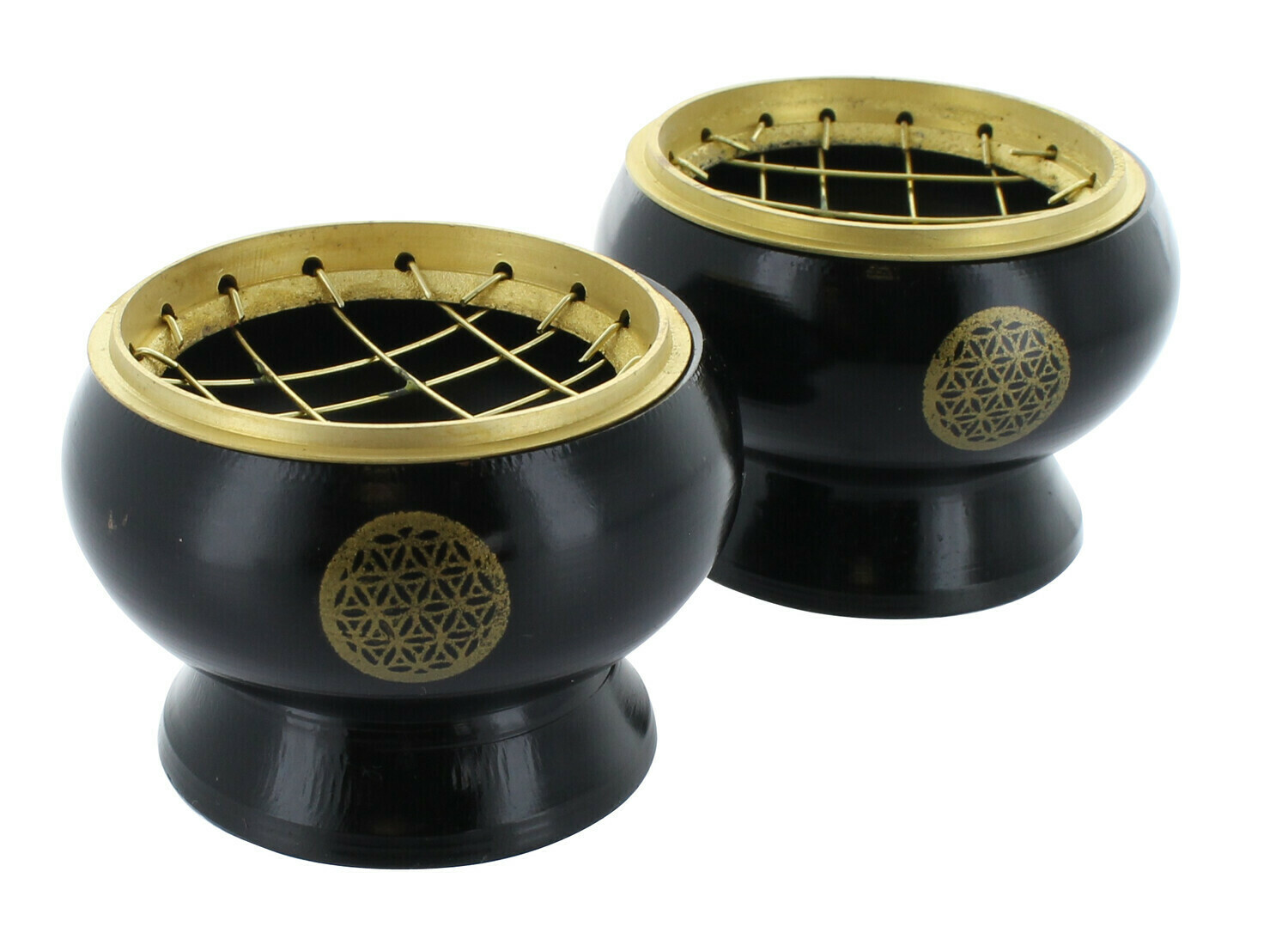 Ce brûle-encens avec grille modèle Fleur de Vie permet de brûler en toute sécurité les différentes variétés d'encens : grains, poudre, cônes, cubes…Diamètre : 6 ,5 cm - Hauteur : 4,5 cm. (Prix pour 1 seul encensoir)